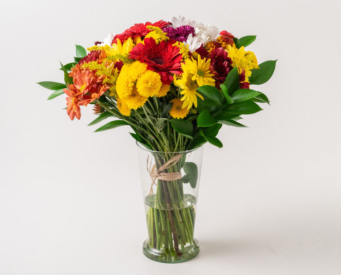 Este pequeno arranho é ideal para homenagear as pessoas mais queridas. Confeccionado com flores do campo, como gérberas, crisântemos e margaridas, ele é entregue em um cachepot, aumentando seu charme e deixando-o ainda mais carinhoso.