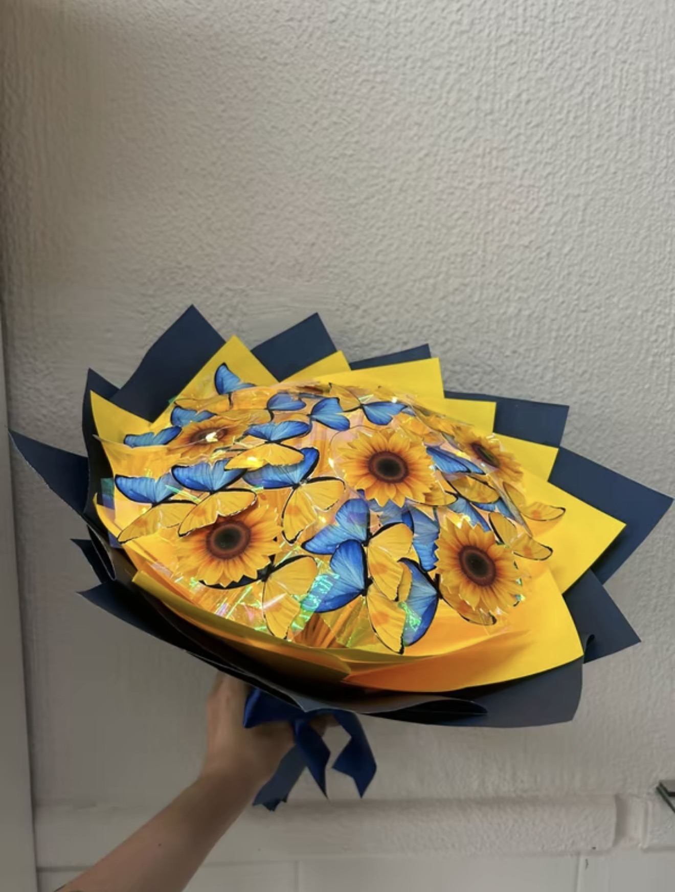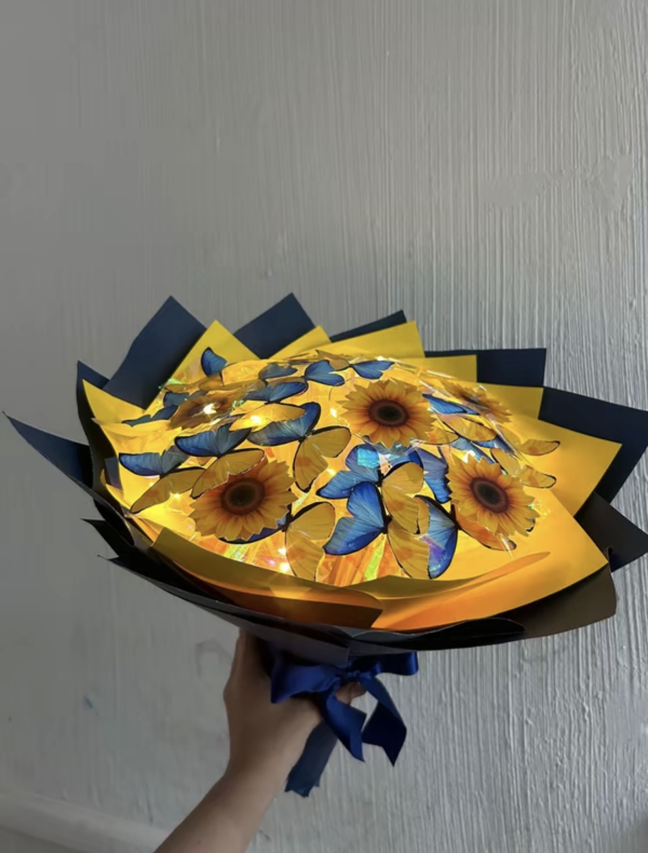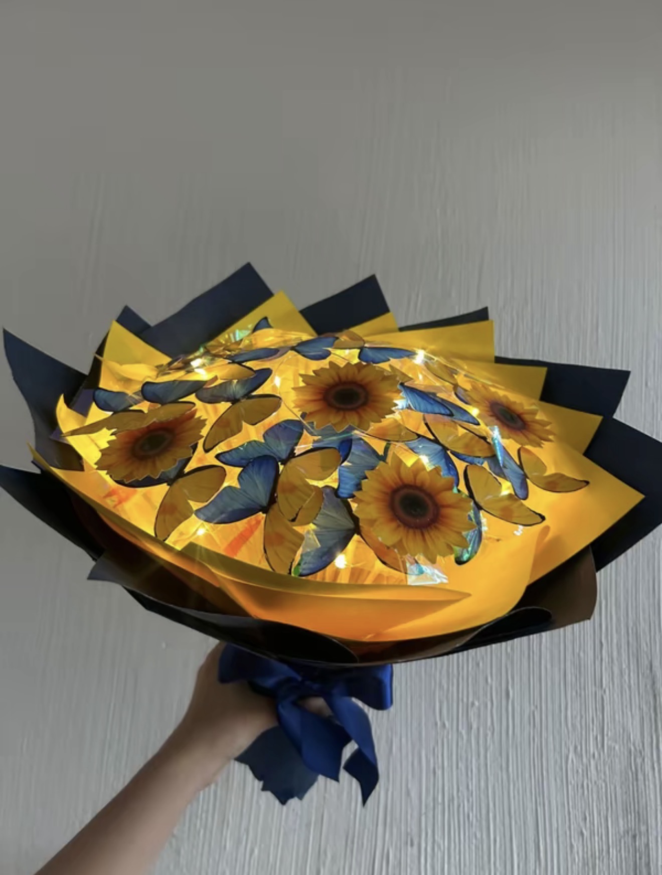 Buque de borboleta Van Gogh com LED e girassol quantidade